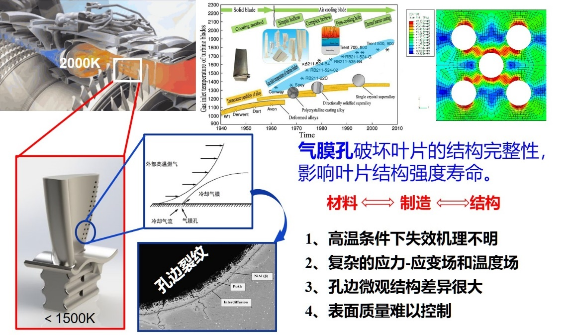 由于长期受到欧美等国技术封锁,目前我国航空发动机技术作为“卡脖子”问题亟需解决。涡轮叶片作为其关键部件,工业部门常在叶片上制气膜冷却孔,来提高服役温度。但是这样破坏了结构整体性,使得我国叶片经常会发生失效破坏,其失效原因非常复杂,如果能在服役前对叶片进行原始质量评定显得尤为重要。